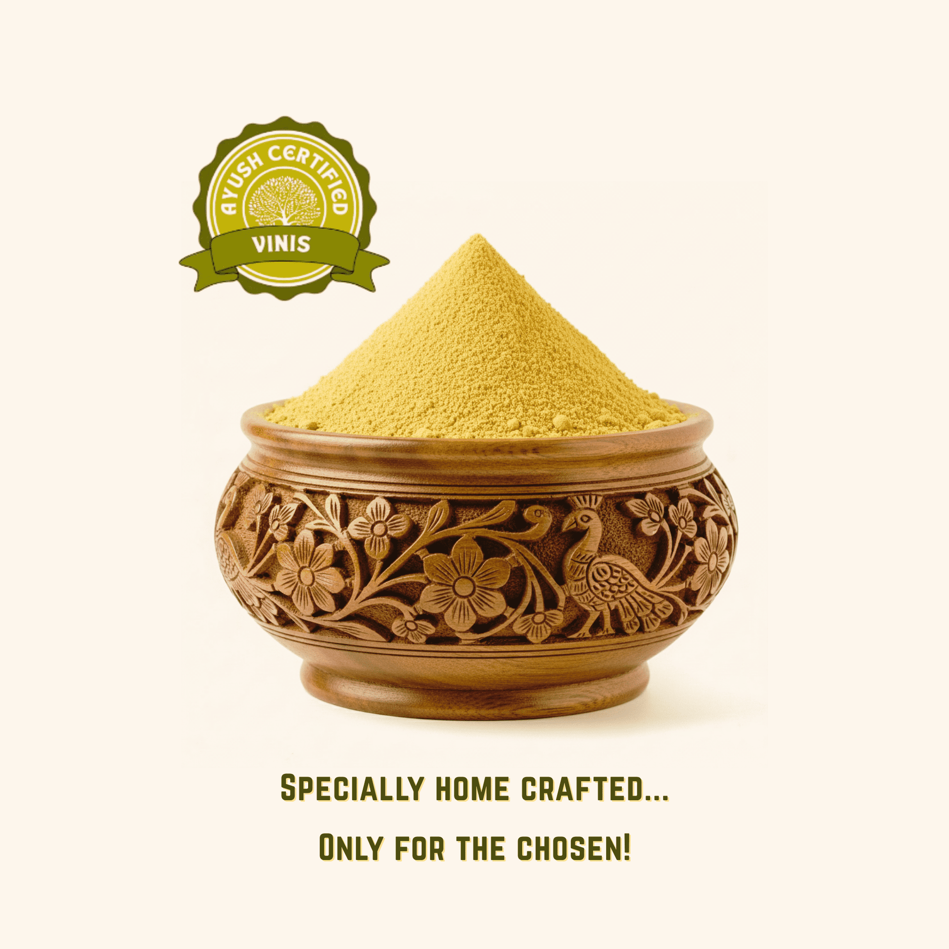 VINIS Herbal Bath Powder is a 100% natural herbal blend crafted to nourish, cleanse, and protect your skin. Enriched with traditional Ayurvedic ingredients, it helps maintain a radiant glow, reduces skin impurities, and promotes clear, healthy skin without chemicals or artificial additives.